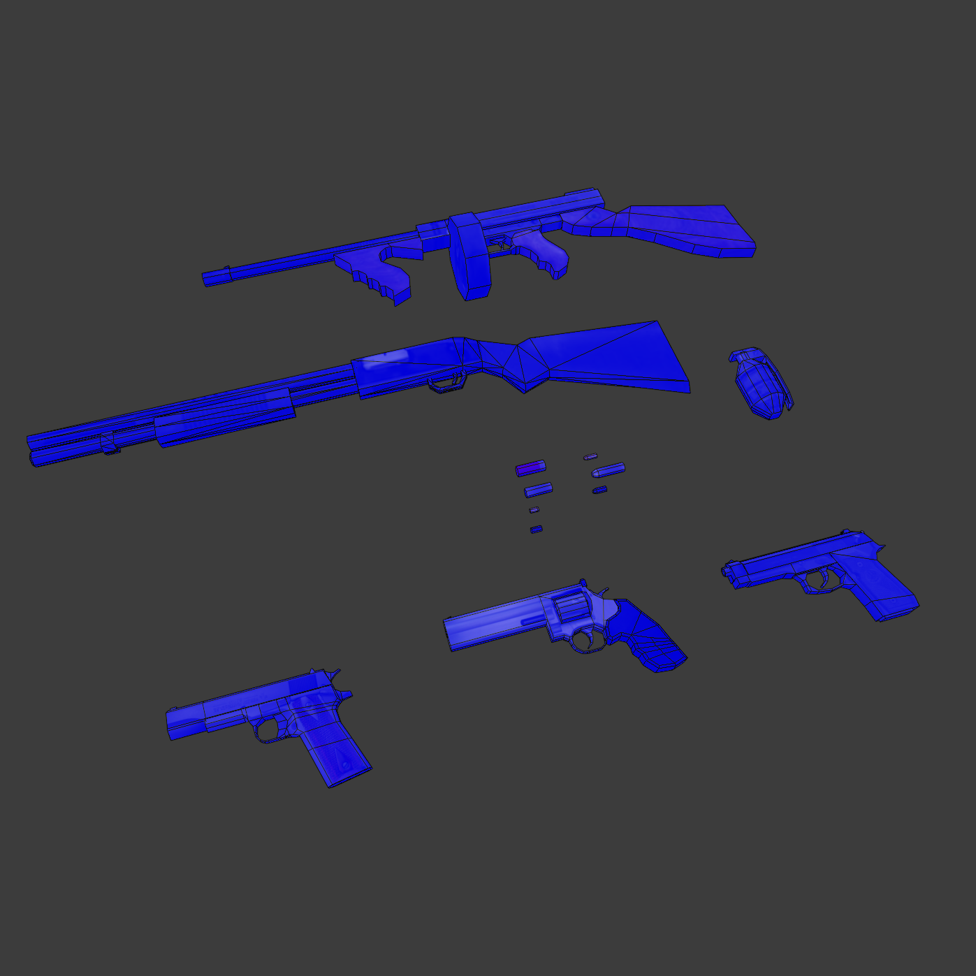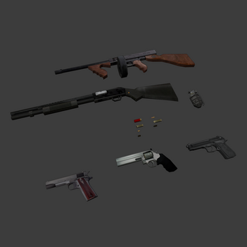 6 weapons + 8 bullets/cases/shells